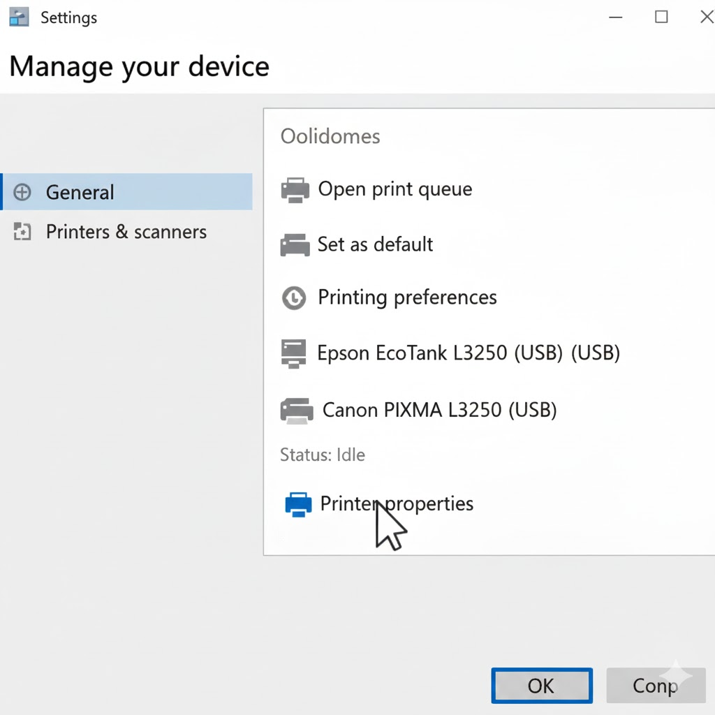 - Trong cửa sổ tiếp theo, chọn Printer properties (Thuộc tính máy in).