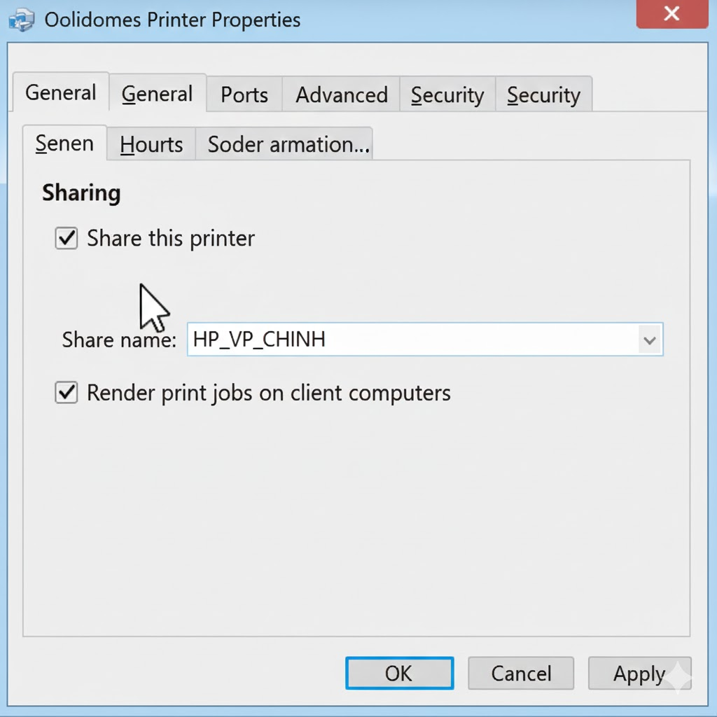 - Tích chọn vào ô “Share this printer” (Chia sẻ máy in này).
