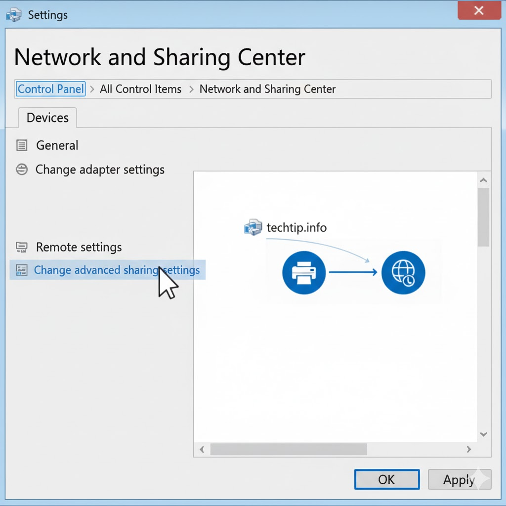 Bước 1.2: Cấu hình Chia sẻ Mạng Nâng cao