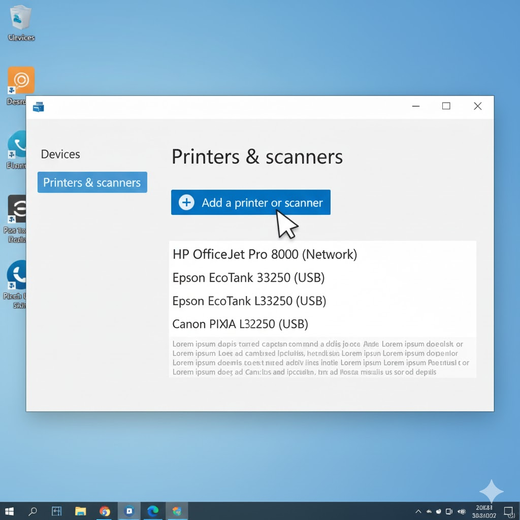- Nhấp vào “Add a printer or scanner” (Thêm máy in hoặc máy quét).